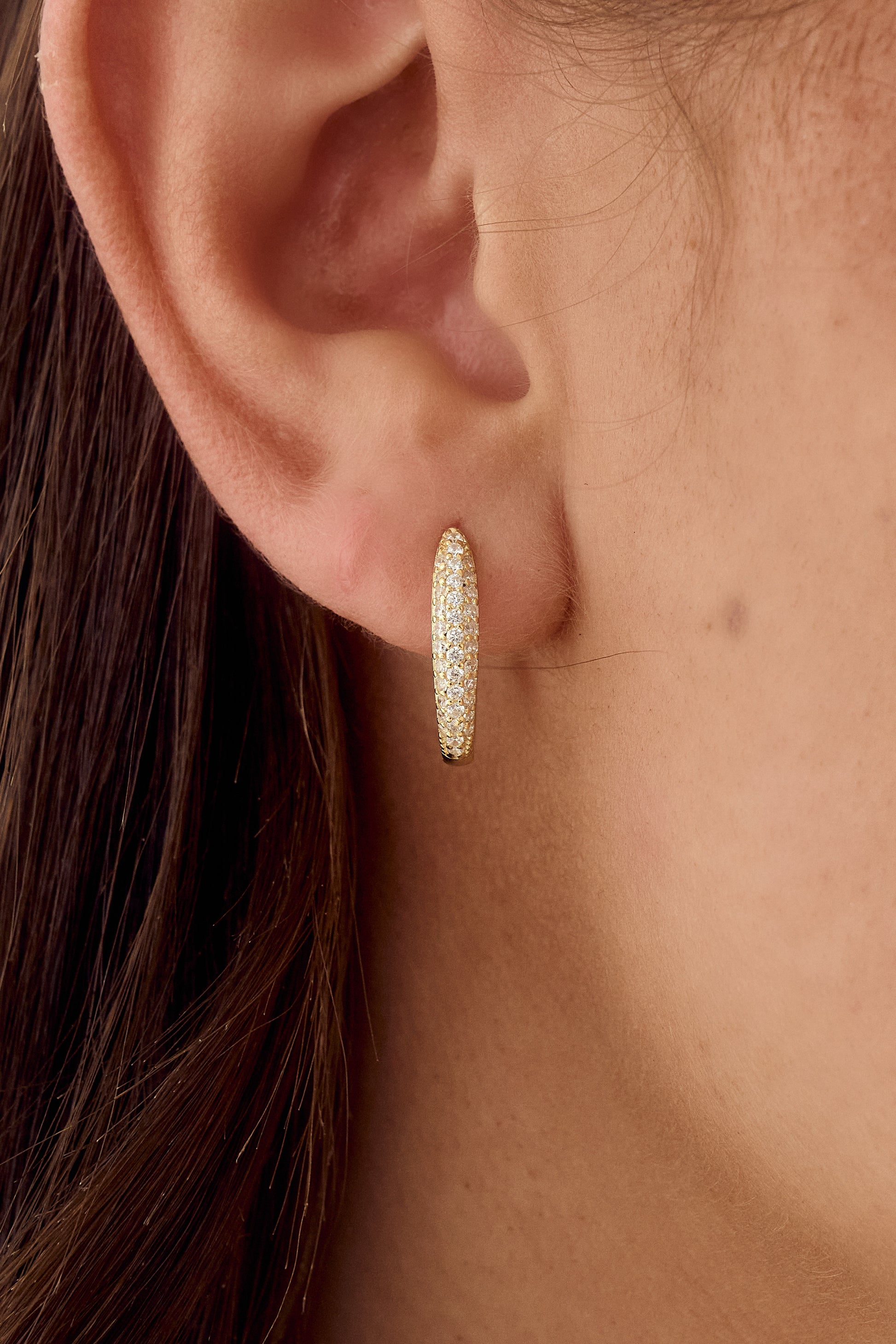 A beautiful pave hoop earring that will go with absolutely any Occassion. From everyday wear to the perfect earring on a night out, don’t miss out on scoring yourself a pair of these beautiful earrings!