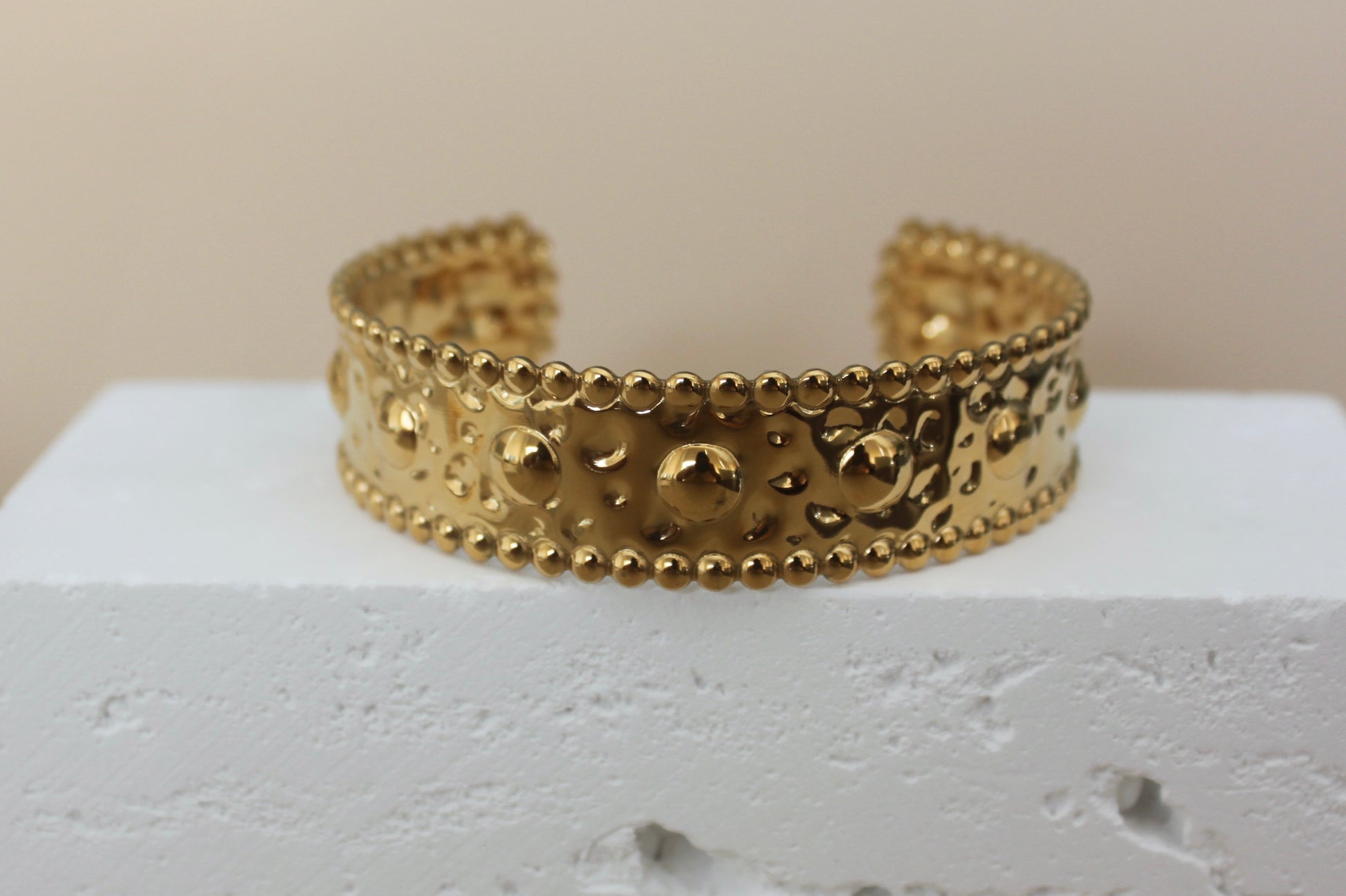 Thick beaded look free open bangle cuff. Cuff can be adjusted to your own individual wrist size.